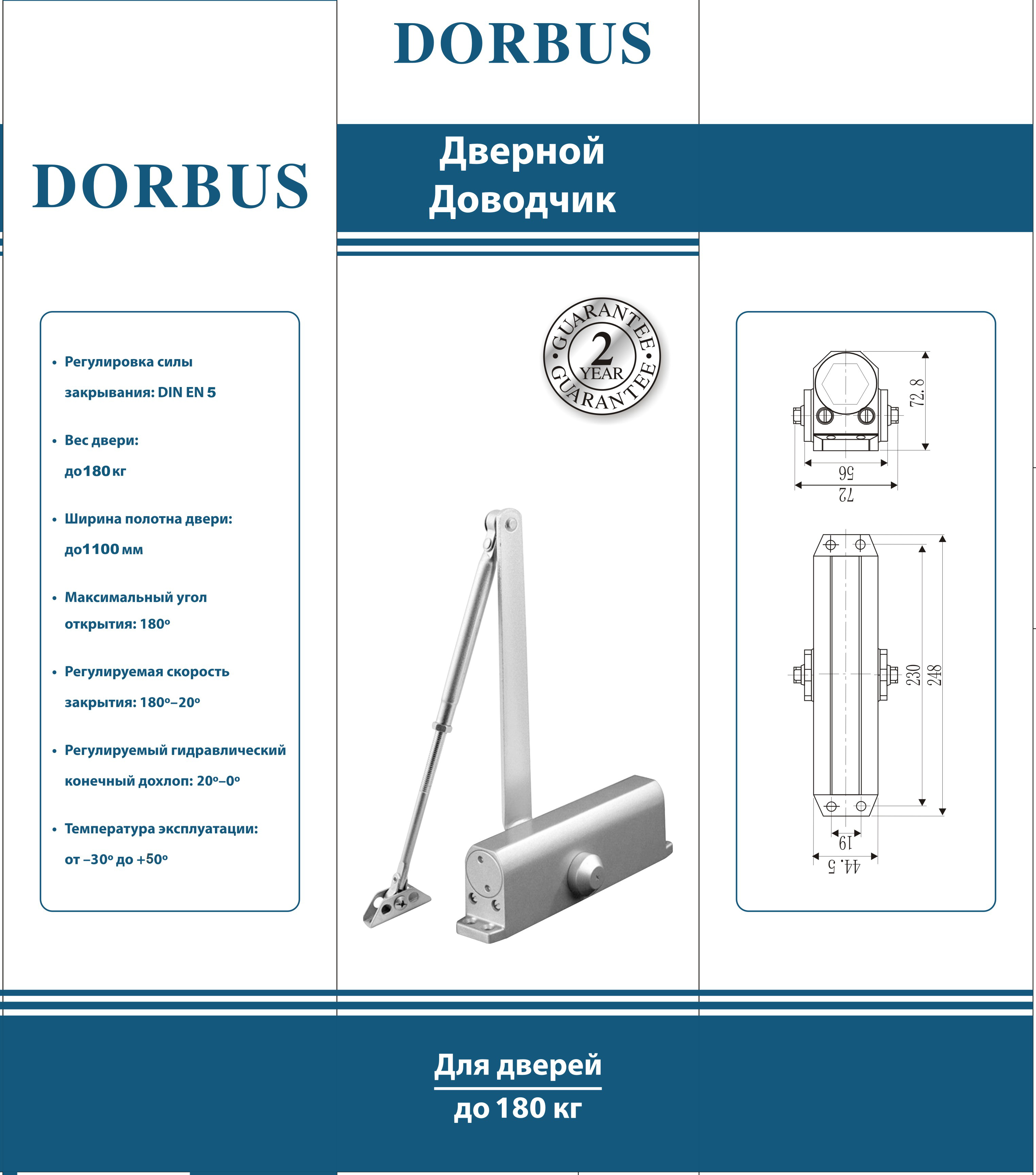 Дверной доводчик DORBUS, 180кг, серебро или коричневый